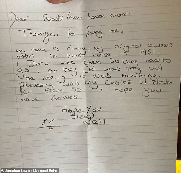 Mua 1 căn nhà, tặng 1 con búp bê! Một chủ nhà đã bất ngờ khi phát hiện ra con búp bê cũ kỹ đang cầm một tờ ghi chú có nội dung đáng sợ bên trong bức tường của ngôi nhà anh vừa mới mua. Giáo viên tiểu học Jonathan Lewis, 32 tuổi, đã chuyển đến ngôi nhà mới của mình ở Walton, Liverpool, vào thứ Sáu. Sau đó anh quyết định kiểm tra khoảng trống bên dưới cầu thang.