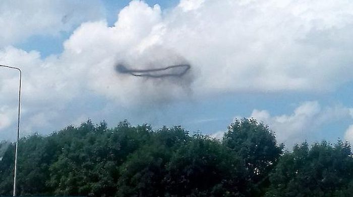 Vòng tròn kỳ lạ xuất hiện trên bầu trời khiến nhiều người hoang mang về nguồn gốc thật sự của nó. Theo như video được đăng tải, vòng tròn màu đen đầy bí ẩn, đang trôi nổi và như đang xoay vòng, xung quanh được bao phủ bởi một làn khói đen.