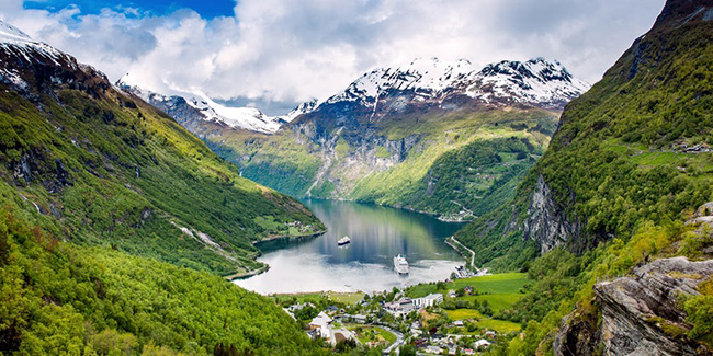 Geiranger, Na Uy: Đây là một bến cảng có phong cảnh tự nhiên tuyệt đẹp với thác nước Seven Sisters như tôn thêm vẻ đẹp thanh bình của vịnh hẹp.