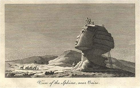 Theo nhà khoa học Nga này, có một bản vẽ từ thế kỷ 19 cho thấy mọi người bước ra từ đỉnh đầu tượng đài - đó là lối vào thứ hai bên trong tượng nhân sư.