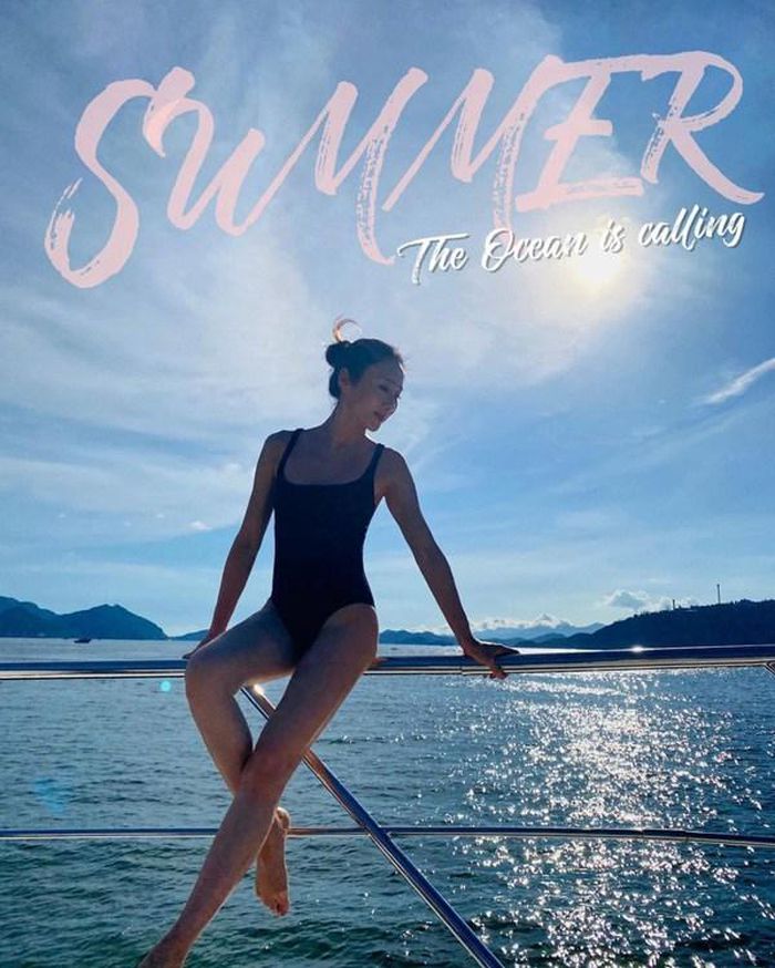 Những trang phục mát mẻ cũng được cô ứng dụng vào những buổi tập thể thao hay đi bơi, lặn biển.