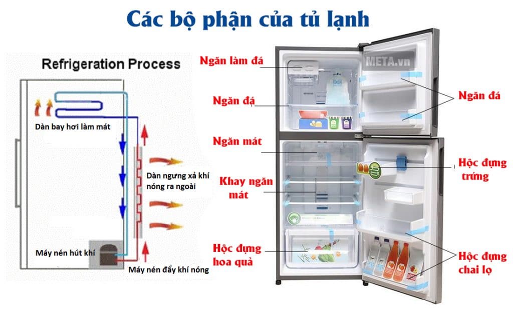 Những chiếc tủ lạnh sẽ sử dụng năng lượng để phục vụ duy nhất một mục đích: bù đắp cho nhiệt năng truyền từ bên ngoài vào bên trong thông qua lớp vỏ bọc cách nhiệt.