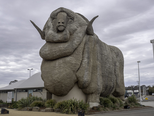 Hình ảnh ngỡ quái vật trong truyền thuyết, ai dè có thật 100% lại còn mang ý nghĩa đặc biệt không đùa được đâu! Đó là bức tượng chú cừu đực Big Merino nổi tiếng nằm ngay gần lối ra phía Nam của thị trấn được xem là biểu tượng của Goulburn - "thủ đô len của thế giới".