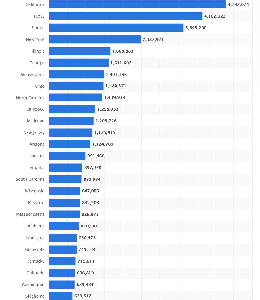 Total number of coronavirus (COVID-19) cases in the United States as of October 14, 2021, by state