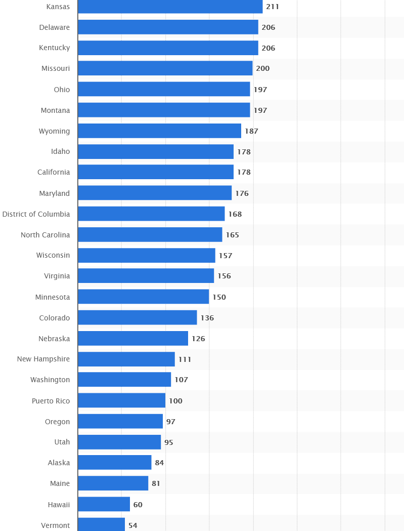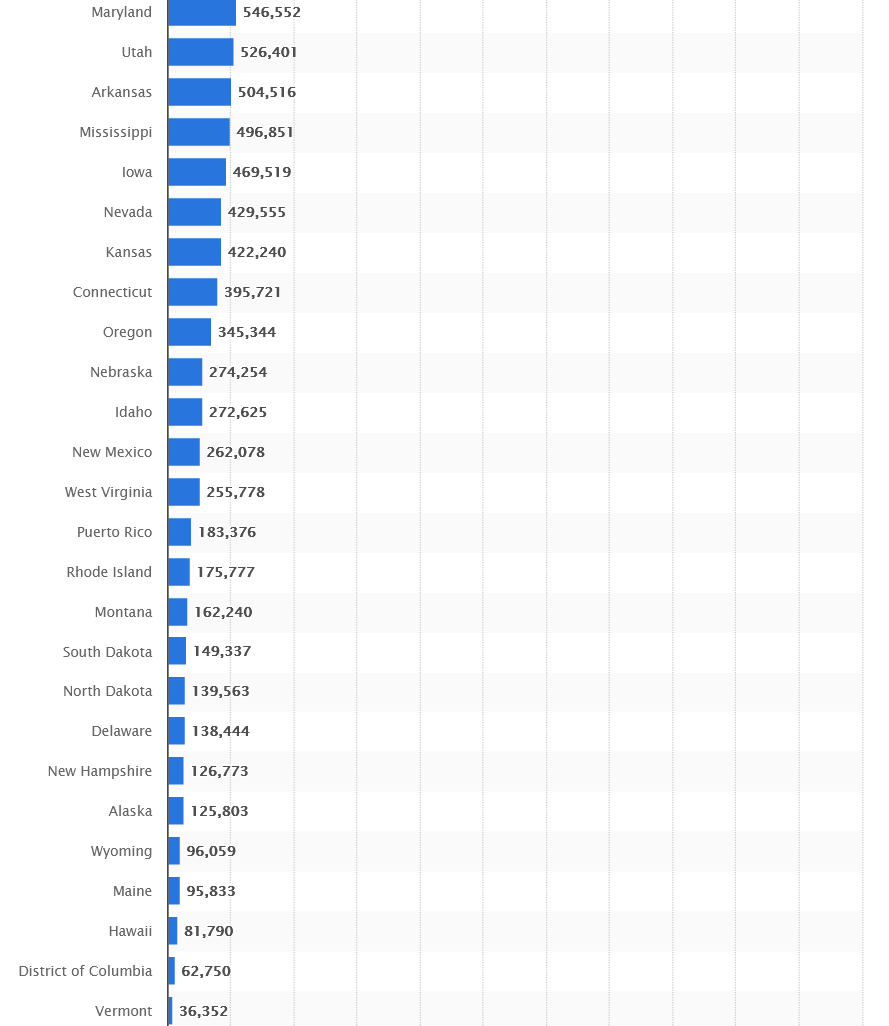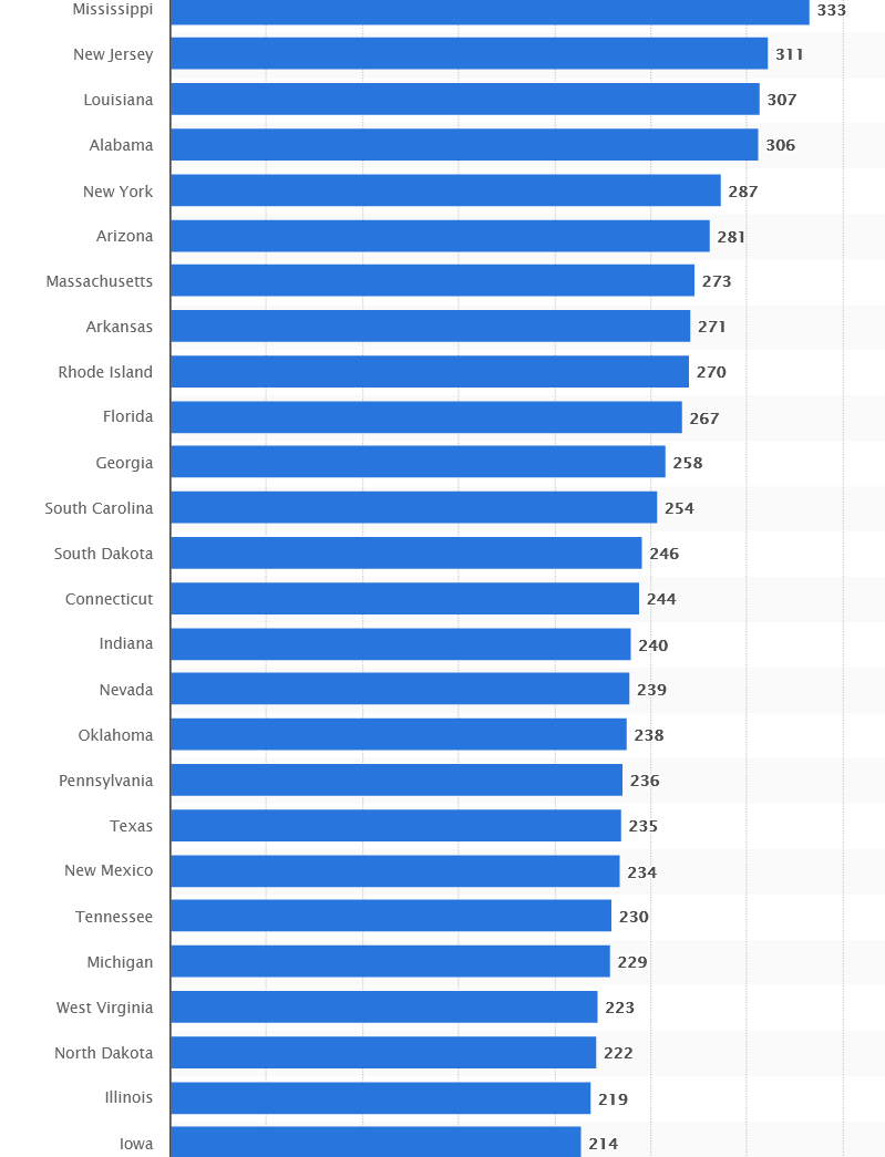 Old  Default Total number of U.S. coronavirus (COVID-19) cases & death rates as of October 14, 2021, by state