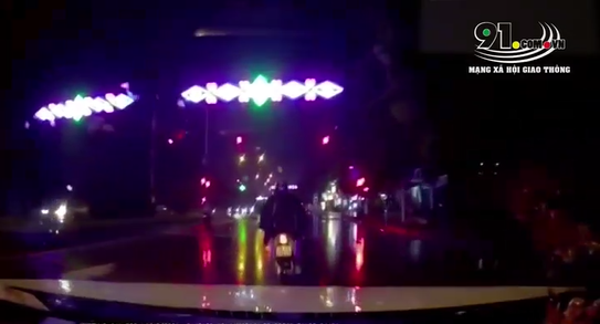 Một đoạn clip được trích xuất từ camera hành trình, sự việc xảy ra vào một tối mưa nặng hạt.