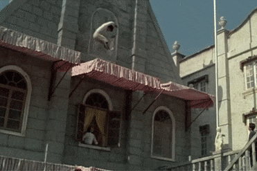 Bộ phim điện ảnh "Kế hoạch A" (1983) có cảnh Thành Long nhảy xuống từ một tháp đồng hồ cao 15 mét (Ảnh: YouTube).