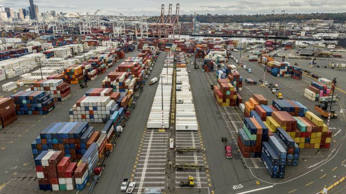 Hàng hoá tại cảng Seattle ở Washington: Ảnh: Bloomberg