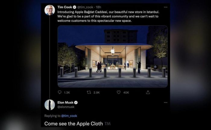 Phản hồi của Elon Musk đối với dòng tweet của Tim Cook.