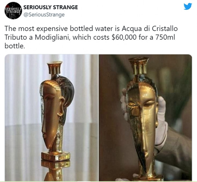 Theo Indiatimes, Acqua di Cristallo Tributo a Modigliani được ghi vào sách Kỷ lục Thế giới Guinness là chai nước đắt nhất năm 2010.