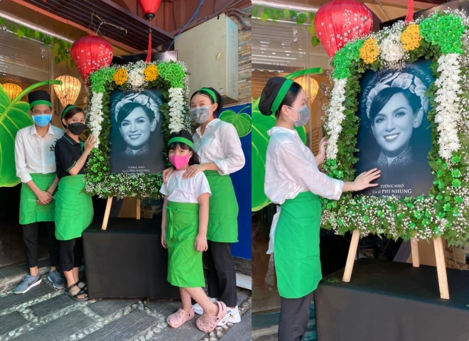 Vào ngày 31/10, con gái nuôi của Phi Nhung là Thiêng Ngân cũng đã đăng tải hình ảnh cùng các anh chị em đến nhà hàng chay làm việc. Trước cửa nhà hàng, mọi người đã đặt ảnh tưởng nhớ cố ca sĩ Phi Nhung. Thiêng Ngân xúc động viết: "Mình ở quán đón khách nha mẹ".