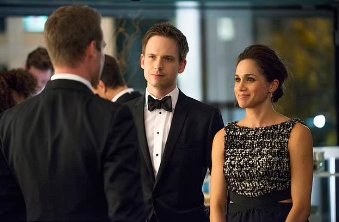 Meghan và Patrick J Adams, người thủ vai Mike Ross và cũng là chồng cô, trên màn ảnh. Ảnh: NBC Universal
