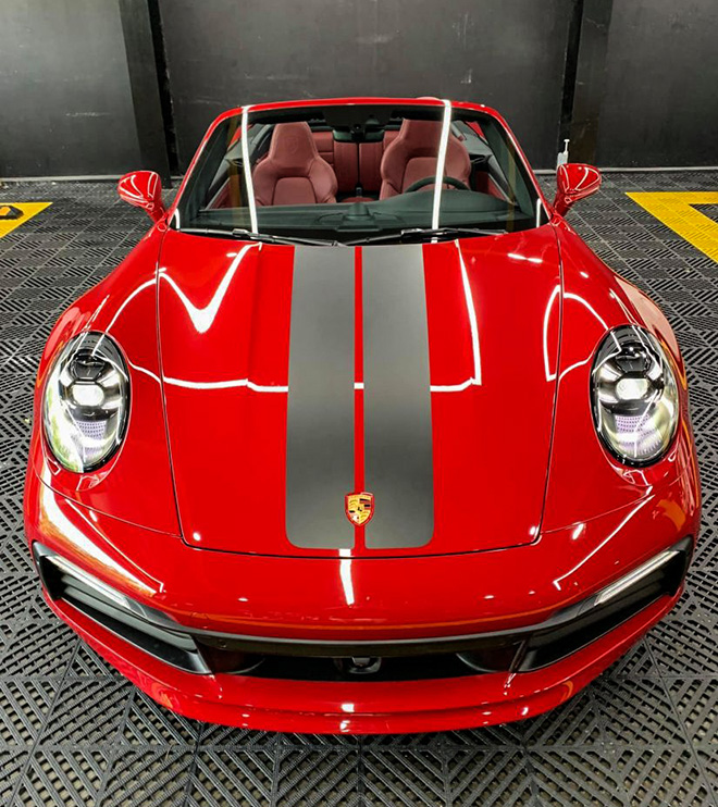 Chiếc Porsche 911 Carrera S Cabriolet thứ hai tại Việt Nam mang màu sơn đỏ tươi, được thương hiệu xe thể thao đến từ Đức gọi là Guards Red. Đây là màu sơn tiêu chuẩn của Carrera S và khách hàng sẽ không tốn tiền khi chọn màu sơn này.