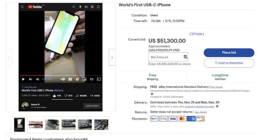 Chiếc iPhone sử dụng cổng sạc USB-C đầu tiên trên thế giới đang được đấu giá trên eBay. Chủ nhân của nguyên mẫu này cũng chia sẻ cách anh làm trên YouTube.