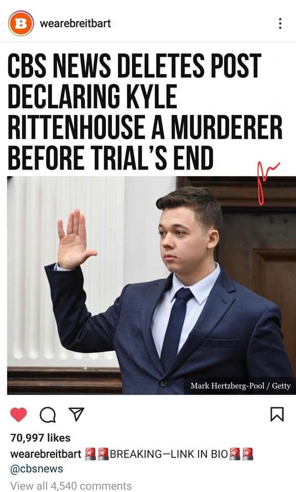 Thằng báo lá cải thổ tả dâm chủ CBS News đã xoá hết những bài viết của nó mạ lị cậu trẻ Kyle Rittenhouse là 1 tên sát nhân trước khi phiên toà xử cậu chấm dứt.