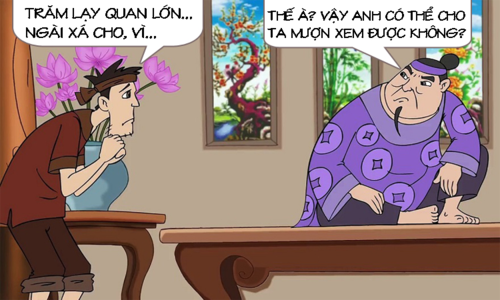 - Trăm lạy quan lớn… Ngài xá cho, vì… con làm gì có sách ấy! Con nói láo đấy ạ!