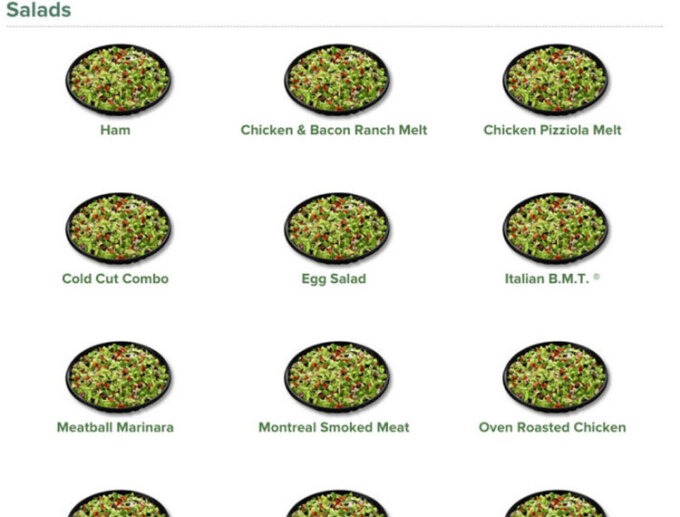 Lại thêm một "siêu phẩm" nữa về hình minh họa món ăn trên. Nhiều thực khách nói rằng họ không hiểu nhà hàng minh họa làm gì, khi 10 món salad đều giống hệt nhau như thế này. "Có phải, nhà hàng cố tình trêu chúng tôi không?", một người bình luận.