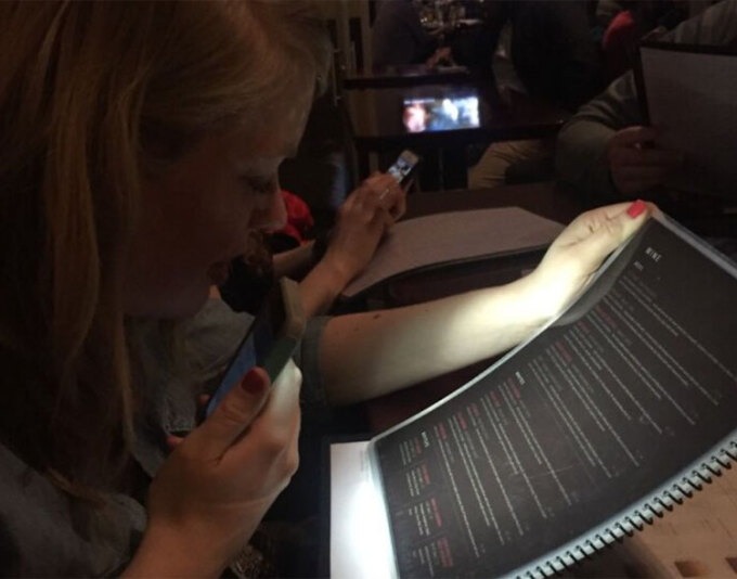 Còn nhà hàng này dán thực đơn lên gương, và bật đèn sáng trưng. "Nếu tôi đến quán này, tôi sẽ bắt gã chủ quán ra đọc bằng hết các món được in lên đây", một người nói. "Tôi chưa từng đọc một cái thực đơn nào chói mắt như thế này", người khác viết.