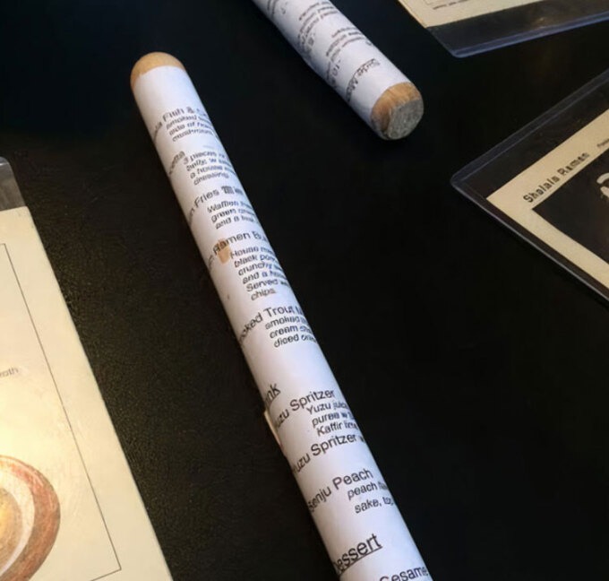 Nhà hàng này đã dán thực đơn vào những chiếc đũa, và không giải thích gì thêm cho khách. "Lại thêm một siêu phẩm. Tôi xin ngả mũ trước kẻ đã nghĩ ra cách làm menu kiểu này. Các nhà hàng gắn sao Michelin nên học tập", một thực khách khi xem bức ảnh đã bày tỏ quan điểm.