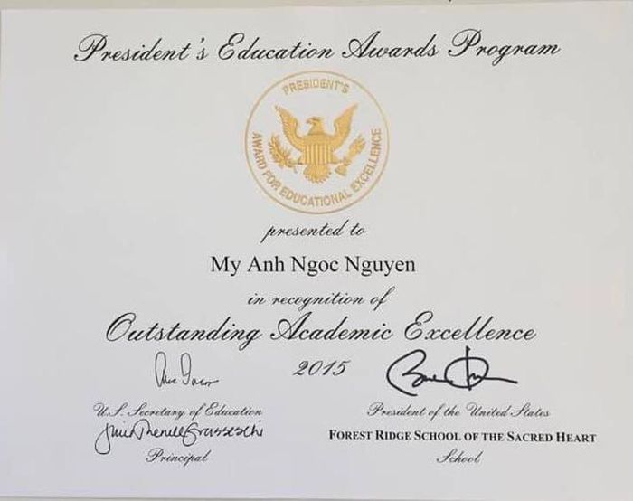 Mỹ Anh từng được cựu Tổng thống Mỹ tặng bằng khen vì thành tích học tập xuất sắc.