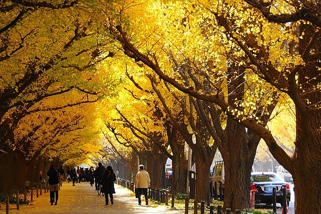 Tháng 11 hàng năm thường là thời điểm cảnh sắc mùa thu ở Tokyo (Nhật Bản) đẹp nhất. Giữa thành phố tất bật mỗi ngày, cây xanh âm thầm thay lá mới, nhẹ khoác màu áo rực rỡ cho khung cảnh xung quanh. Vào ban đêm, những hàng cây được thắp đèn sáng, phản chiếu sắc đỏ và vàng ấm áp khắp không gian. Đi bộ dọc theo các con đường này là trải nghiệm đáng nhớ với bất kỳ du khách nào có dịp tận hưởng mùa thu Tokyo.