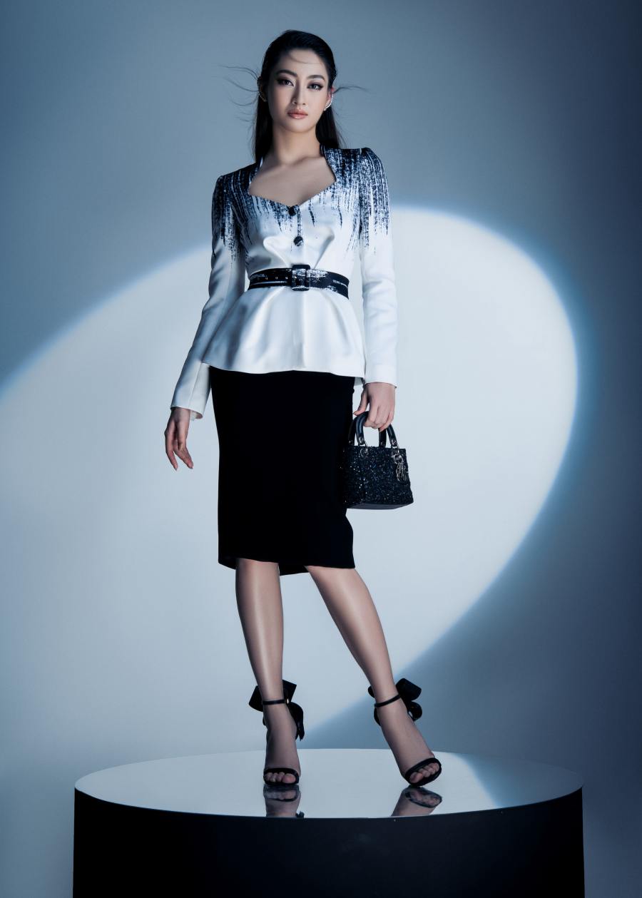 Khác với hình ảnh công chúa thường thấy, Lương Thuỳ Linh xuất hiện với dáng vẻ của một nữ giám đốc thành đạt trong BST mới của NTK Đỗ Long.