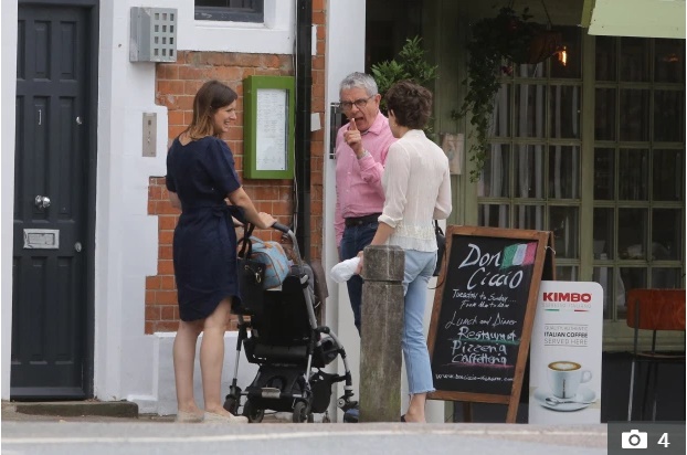 Lần hiếm hoi Rowan Atkinson xuất hiện cùng vợ trẻ và con gái nhỏ trên phố.