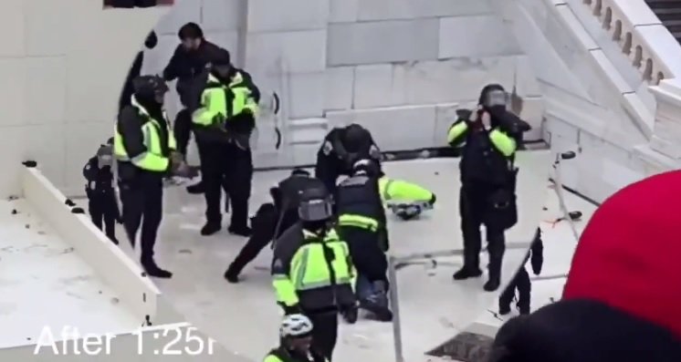 Một video mới từ ngày 6 tháng 1 cho thấy cảnh sát Capitol xử lư và đánh đập một người biểu t́nh Trump một cách vô cảm