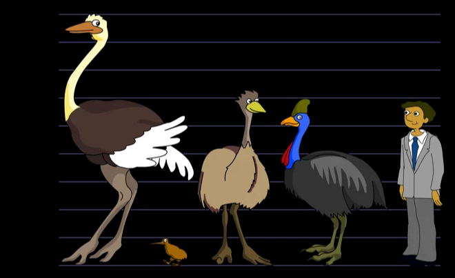 Nếu so sánh về kích thước, chim cassowary nhỏ hơn hai loài họ hàng của chúng là chim emu và đà điểu. Tuy nhiên, điểm đáng sợ nhất của loài chim này chính là kỹ năng chiến đấu. Khi bị đe dọa, chim cassowary có thể nhảy lên cao và tung ra một cú quét chân về phía trước, trong khi đà điểu chỉ có thể rượt và mổ bạn còn chim emu thì thích đá hậu về phía sau.