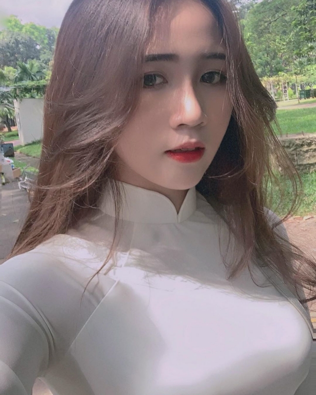 Những hình ảnh mặc áo dài như thế này của cô nhận được nhiều lời khen của cư dân mạng.