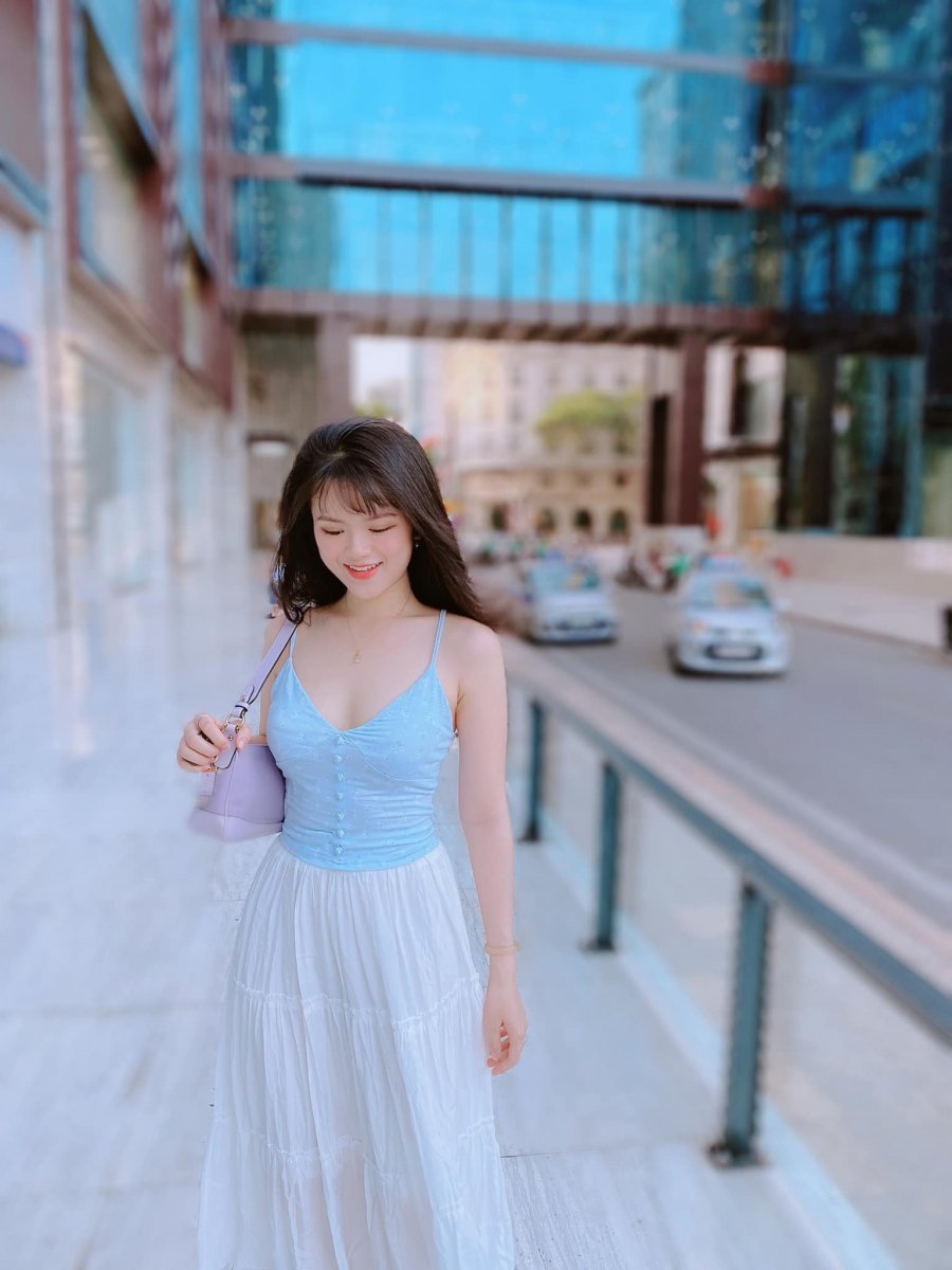 Dù mix đồ đơn giản chân váy midi với áo 2 dây nhưng Hà Đan vẫn toát lên sự gợi cảm vừa đủ.