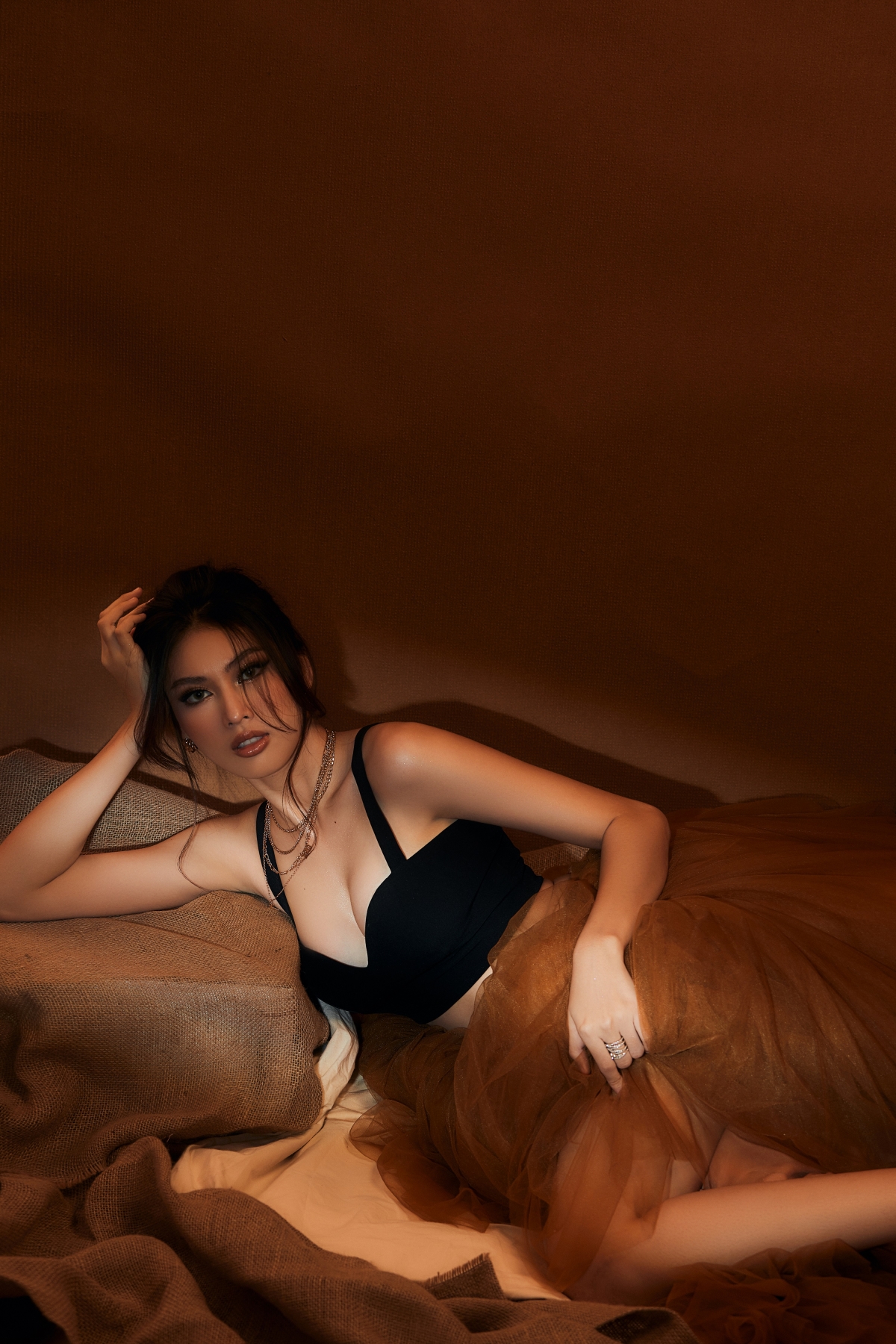 Khác với sự dịu dàng nữ tính quen thuộc, Ngọc Thảo mới đây lại mang đến cho khán giả những hình ảnh mới toanh với phong cách quyến rũ, trưởng thành. Thần thái sang trọng và cuốn hút giúp cho nàng Á hậu tỏa sáng trong từng khung hình.