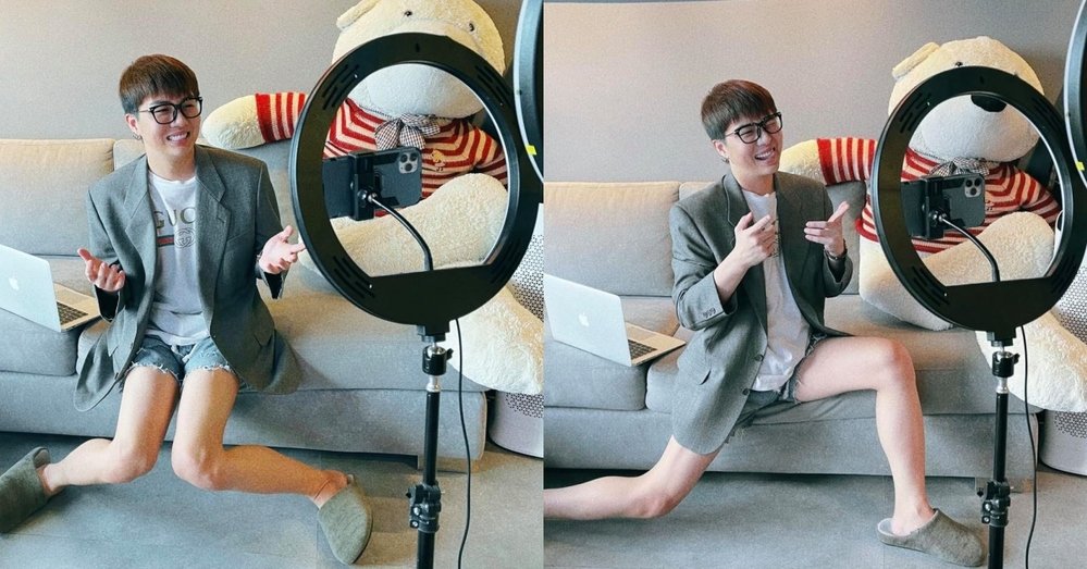 Không hổ danh diễn viên hài, Duy Khánh đăng tải hình ảnh hậu trường của buổi quay video tại nhà mùa dịch trong trang phục lệch tông. Anh chàng chọn quần đùi jeans phối với áo thun, khoác blazer. Nam diễn viên chọn trang phục này vì cho rằng lên hình cũng chỉ thấy phần trên nên mặc quần ngắn sẽ tránh bị tê chân và hầm bí khi phải ngồi lâu.