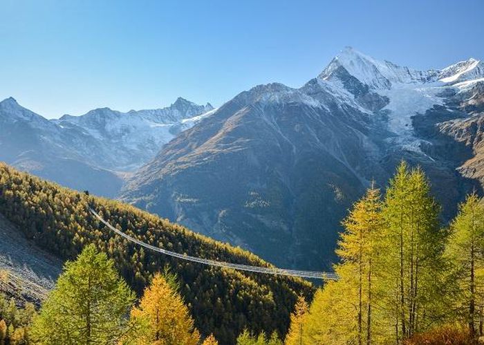 Nếu bạn sợ độ cao, hãy suy nghĩ kỹ đến việc vượt quaCầu treo Charles Kuonen.Cây cầu dài 495 m và cao 85 m. Du khách có cơ hội chiêm ngưỡng khung cảnh Matterhorn, Weisshorn và dãy Alps khu vực Bernese. Bạn sẽ phải giữ ổn định cơ thể khi bước đi trên cầu để khỏi lắc lư.