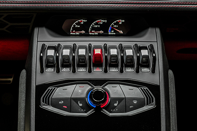 Bên trong nội thất, bệ trung tâm với màn hình màu TFT độ phân giải cao kích thước 12,3 inch, hệ thống thông tin giải trí Lamborghini Infotainment System II. Ghế ngồi thể thao được bọc da Alcantara sang trọng màu đen nổi bật trên trên những đường chỉ khâu màu đỏ. Màn hình màu TFT độ phân giải cao kích thước 12,3 inch. "Siêu bò" này còn được trang bị ba chế độ lái tích hợp ngay trên vô-lăng gồm có Strada (thông thường), Sport (thể thao) và Corsa (xe đua).