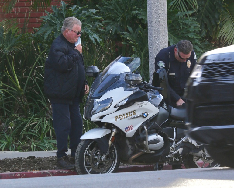 Nam diễn viên người Mỹ William Shatner (90 tuổi) đã ở lại hiện trường cùng người phụ nữ có liên quan tới sự việc để chờ cảnh sát tới xử lý (Ảnh: New York Post).