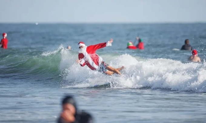 Hoạt động gây chú ý diễn ra tại bãi biển Cocoa hôm 24/12, khi hàng trăm người lướt sóng mặc trang phục Ông già Noel để kỷ niệm ngày lễ và tham gia một sự kiện quyên góp tiền cho các tổ chức từ thiện địa phương.