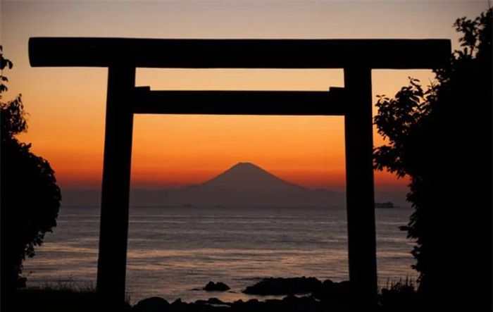 Vào buổi chiều, hình ảnh núi Phú Sĩ nổi trên mặtbiển nằm gọn trong cổng đền thờ tạo nên một khung cảnh đẹp nhưtranh vẽ. Ngọn hải đăng Sunosaki dẫn lối vào vịnh Tokyo là một nơi tuyệt vời để bạn có thể ngắm nhìn núi Phú Sĩ, núi Amagi và đảo Izu Oshima.