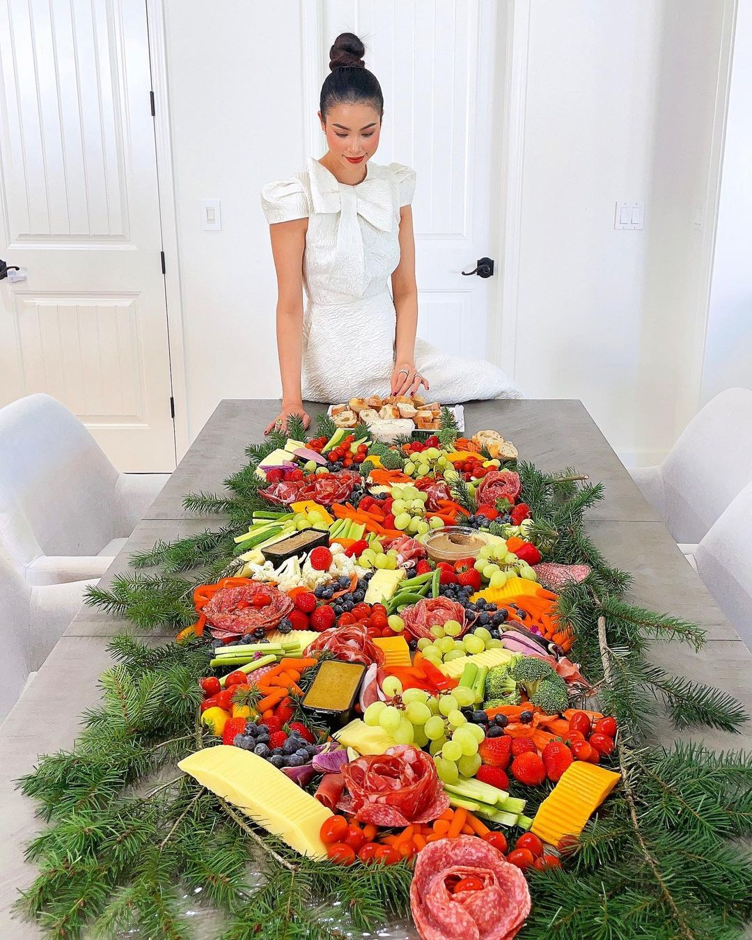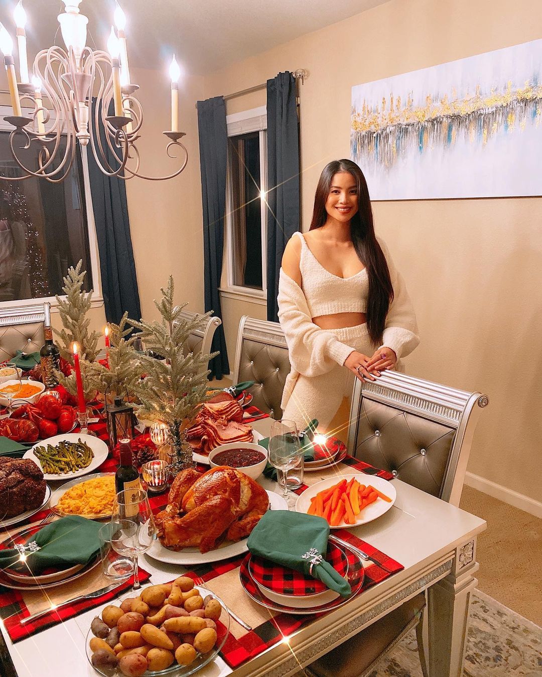 Chẳng là cách đây không lâu, Phạm Hương đã khoe bàn tiệc thịnh soạn của gia đình cô trong đêm Noel khiến nhiều người không khỏi thích con mắt. Cô bày biện bao nhiêu là món ngon của lạ, trái cây đầy ụ, thoạt nhìn thôi cũng biết toàn đồ đắt tiền. Nhưng dưới con mắt của cộng đồng mạng, Phạm Hương bỗng dưng... "nghèo khổ" vì chẳng có lấy 1 cái đĩa để đựng đồ ăn. Xem 2 bức ảnh bên dưới bạn sẽ rõ ngay.
