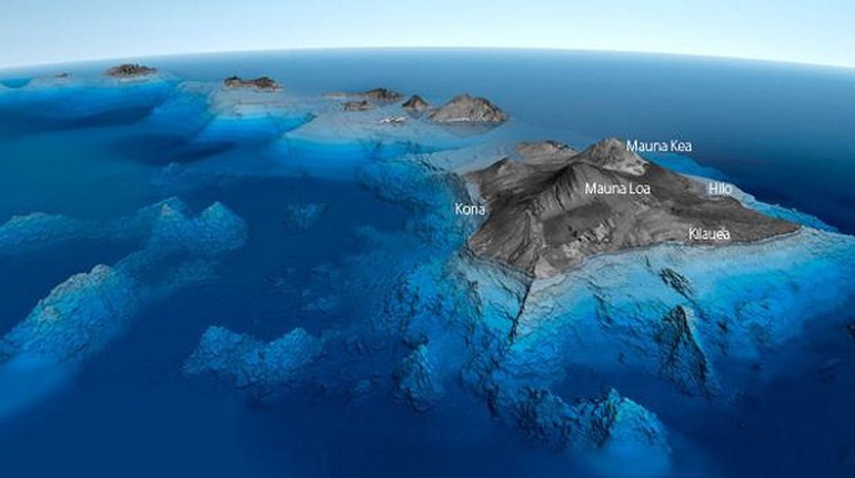 Phần lớn ngọn núi Mauna Kea nằm ẩn dưới mực nước biển (Ảnh: Imgur).