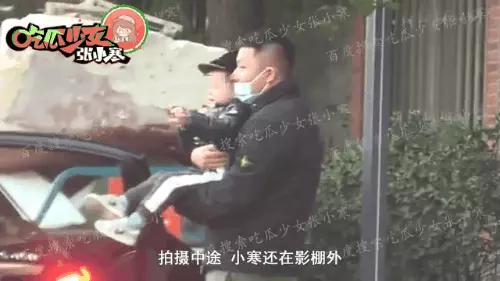 Người đàn ông mặc áo đen nhận được sự quan tâm của công chúng khi ôm chặt bé Tưởng Tưởng tại phim trường