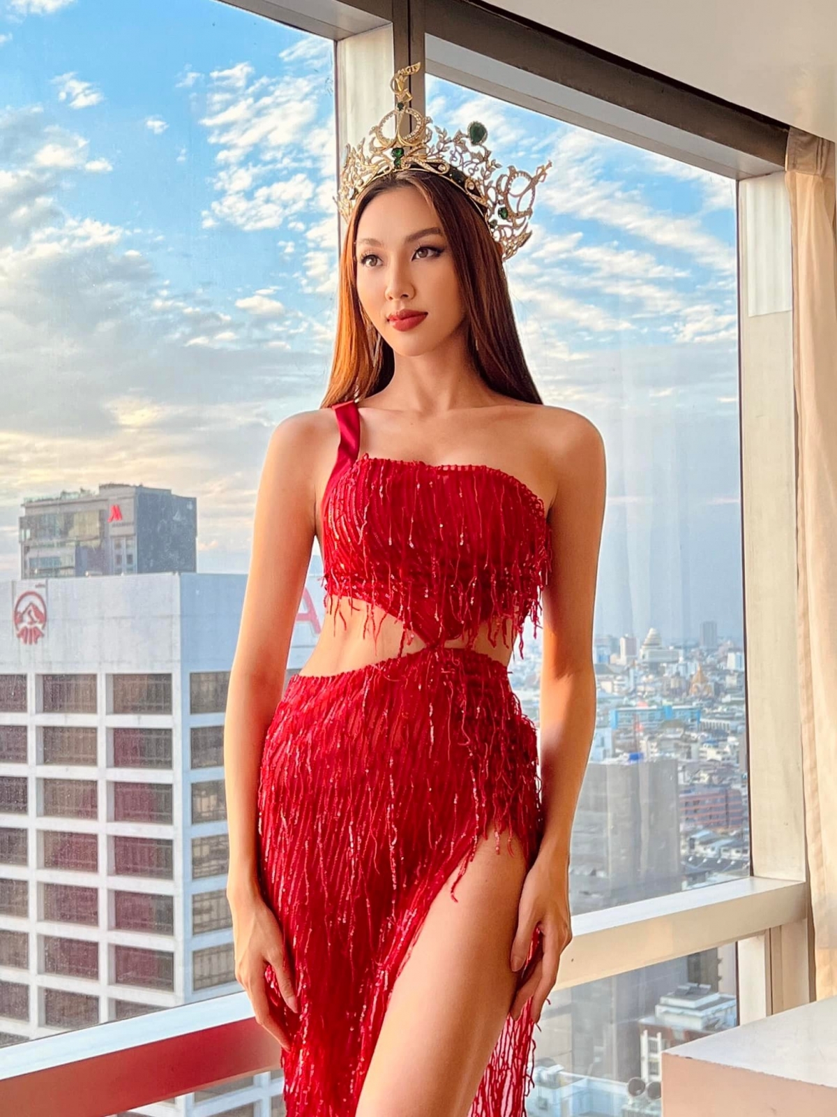 Đầu năm 2022, Hoa hậu Nguyễn Thúc Thuỳ Tiên đã nhận lời trả lời phỏng vấn một đài truyền hình của Thái Lan. Xuất hiện trên sóng, người đẹp diện đầm xuyên thấu đính đá cầu kỳ, khoe trọn vóc dáng nóng bỏng và quyến rũ.