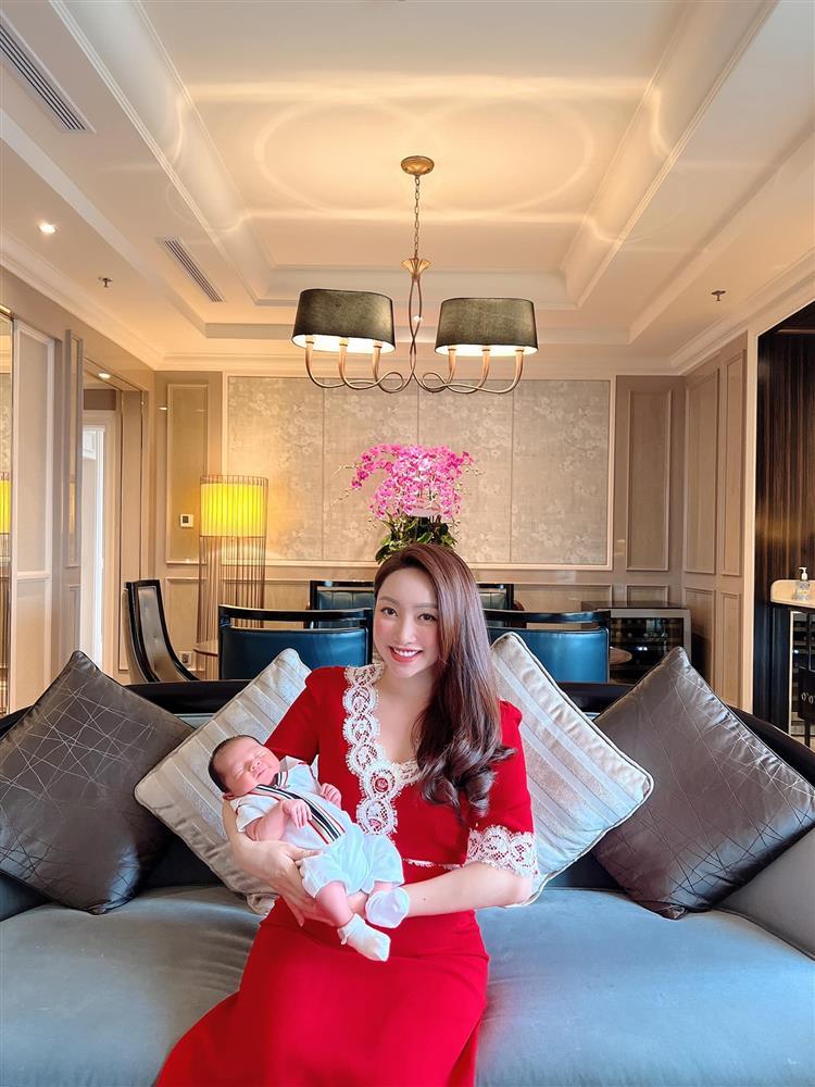 Tối 7/1, Lý Thùy Chang - bà xã diễn viên Chi Bảo - đăng ảnh tái xuất sau ca sinh nở. Nữ doanh nhân bế quý tử trên tay, khoe ngoại hình rạng rỡ trước ống kính.