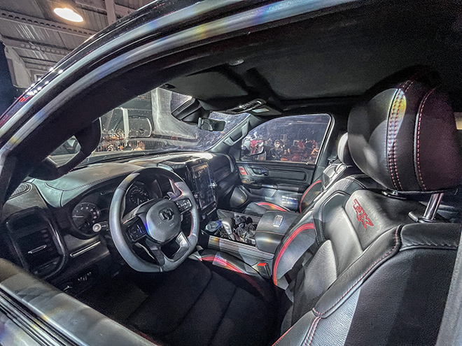 Ngoài ra, RAM TRX có sức kéo rơ-moóc tối đa khoảng 3,6 tấn. Cùng với đó là các chế độ lái như Normal, Wet/Snow, Off-Road và Baja được điều chỉnh thông qua núm xoay, khu vực bảng điều khiển trung tâm có sự xuất hiện của cần số lớn. Bên cạnh các trang bị an toàn và hỗ trợ lái hiện đại khác như: Cảnh báo điểm mù, kiểm soát hành trình thích ứng, cảnh báo va chạm phía trước.