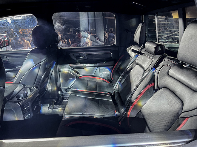 Trong khuôn khổ sự kiện ra mắt showroom mới, mẫu xe bán tải cỡ lớn RAM 1500 TRX chính hãng đầu tiên đã được giới thiệu và công bố mức giá bán lên đến 7,9 tỷ đồng. Ngoại thất của RAM TRX thiết kế hầm hố, mạnh mẽ, nam tính đậm chất xe Mỹ, nội thất hiện đại và tiện nghi với bộ ghế sang trọng, thể thao, một số chi tiết được ốp carbon.