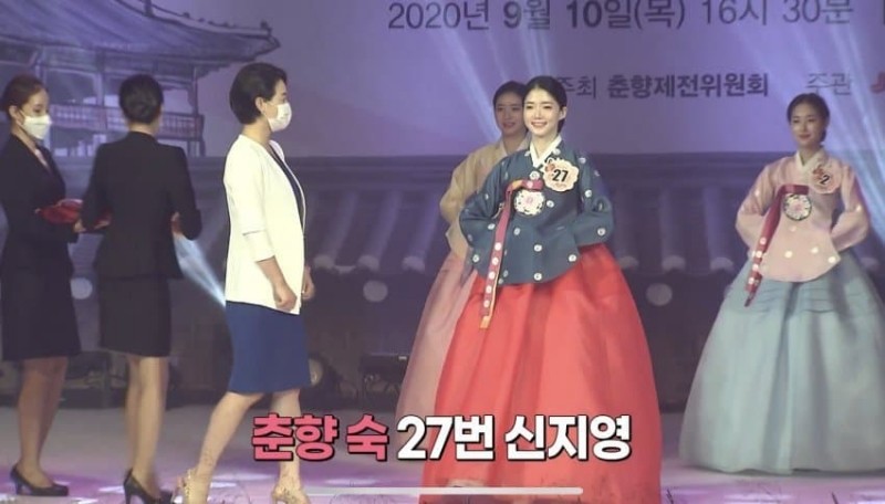 Các thí sinh còn được đánh giá cẩn thận về ứng xử để tìm được một cô gái phù hợp nhất. Việc Shin Ji Yeon được đánh giá cao ở Miss Chunhyang phần nào cho thấy vẻ đẹp thuần Hàn Quốc của cô. Nước da trắng, gương mặt hài hòa đường nét tự nhiên giúp Shin Ji Yeon chiếm được thiện cảm của người đối diện.