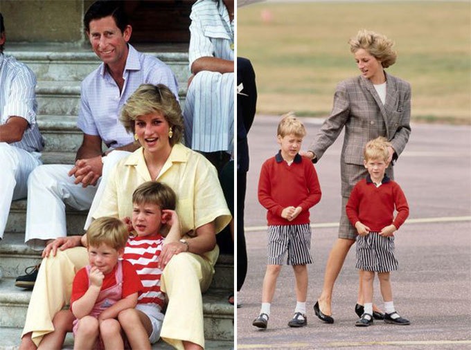 Harry và William khi còn nhỏ bên mẹ, Công nương Diana. Ảnh: UK Press