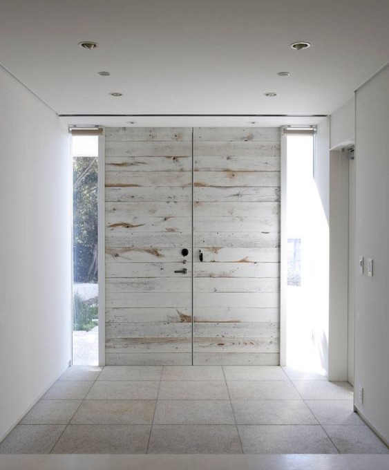 Công đoạn thiết kế cửa ra vào thường bắt đầu bằng việc chọn vật liệu. Cho đến nay, gỗ vẫn là vật liệu phổ biến nhất vì tính linh hoạt, bền và cảm giác ấm áp. Gỗ hợp với nhiều phong cách, đem tới cảm giác mộc mạc khi để thô hoặc thanh lịch khi được đánh bóng.
