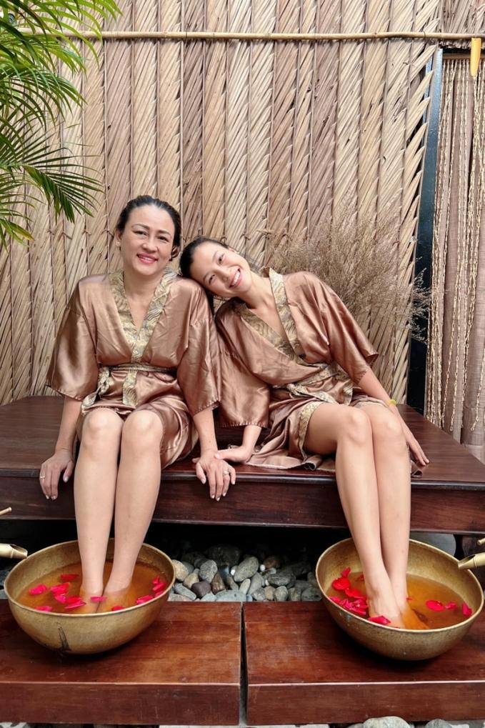 Hoàng Oanh dắt mẹ đi spa thư giãn cách đây hai tuần.
