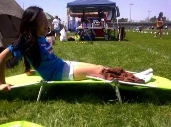 Đôi chân cô gái dường như đang "bị thương" khá nghiêm trọng, nhưng sao vẻ mặt thì lại tươi cười thế kia?